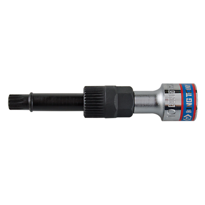 - 1/2" DR. Spline Bit Socket-M10 - Specialized Function: Designed for the removal and installation of freewheel pulleys on alternators. - Efficient Operation: Ideal for dismantling and assembling freewheel pulleys when changing alternators or pulleys. - Secure Grip: The bit on the 1/2" DR. socket holds the pulley shaft in place while the nut is loosened using a 33-teeth union nut with a 19mm spanner. - Broad Compatibility: Works with generator brands such as Bosch, Valeo, Magneti Marelli, and Denso. - Versatile Use: Interchangeable components make it suitable for vehicles including VW, Audi, Citroën/Peugeot, Mercedes, Renault, BMW, Fiat, Ford, and Toyota.