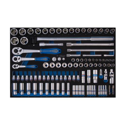 - Discover our comprehensive 103 PC. 1/4-inch, 3/8-inch, and 1/2-inch Drive Socket Wrench Set, expertly arranged in EVA FOAM for trolleys. - Neatly organized in Tray category #6 (560 x 375mm) and Drawer B3 (579x380) for convenient storage and quick tool retrieval."