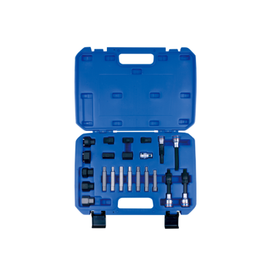 - 22 PC. Alternator Tool Set - Specialized Function: Designed specifically for removing and installing freewheel pulleys on alternators. - Wide Compatibility: Works with various generator brands including Bosch, Valeo, Magneti Marelli, and Denso. - Versatile Use: Interchangeable components make it suitable for VW, Audi, Citroën/Peugeot, Mercedes, Renault, and BMW models.