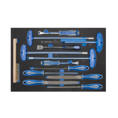 - 13 PC. Hex Key + File Set for Trolley (EVA FOAM) - Tray Category: #6 (560 x 375mm) - Drawer: B3 (579 x 380mm) - This specialized tool set is tailored for automotive applications, catering specifically to VOLKSWAGEN-GROUP, MERCEDES-BENZ, OPEL, BMW, and Japanese passenger cars. - It includes hex keys and files arranged neatly in EVA foam, ensuring easy identification and storage within your tool trolley.