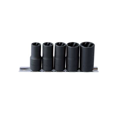 - 5 PC. 1/2" DR. Damaged Nuts Remover Socket Set - High-Quality Material: Crafted from premium SNCM alloy steel for superior wear resistance and long-lasting durability. - Versatile Use: Perfect for removing rounded, damaged, or corroded nuts, bolts, oil drain plugs, marine nuts, exhaust manifold nuts, pipe nipples, and studs. - Effortless Operation: Eliminates the need for pounding, chisels, or torches, making it easy to handle tough removal tasks.