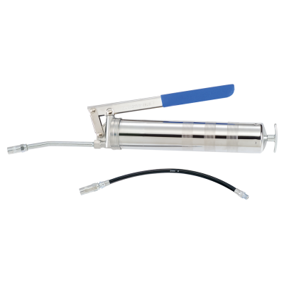 - 400cc Lubrication Grease Gun with 12" Tube (Lever Type) - High Capacity: 400cc grease gun for efficient lubrication. - Versatile Application: Perfect for machines, automobiles, farm and garden equipment, and other vehicles. - Flexible Hose: Includes a 12" flexible plastic hose for easy access to hard-to-reach areas.