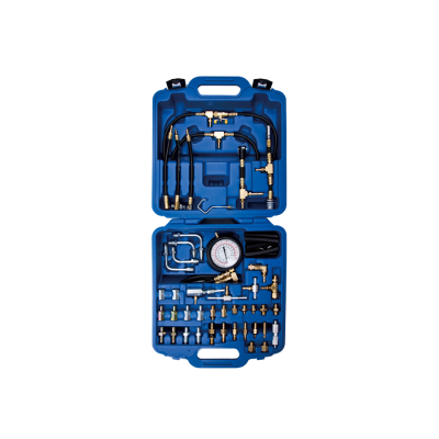- Gasoline Engine Injection Pressure Tester Kit - Diagnostic Tool: Essential for identifying and diagnosing issues with low fuel pressure in gasoline engines. - Shockproof Gauge: Features a durable gauge with dual readings of 0-120 PSI and 0-8 bar for accurate pressure measurement. - Versatile Adapters: Includes a variety of adapters compatible with most injection systems, covering European, Japanese, and American vehicles. - Supports systems such as Bosch CIS, GM TBI, and MFI.