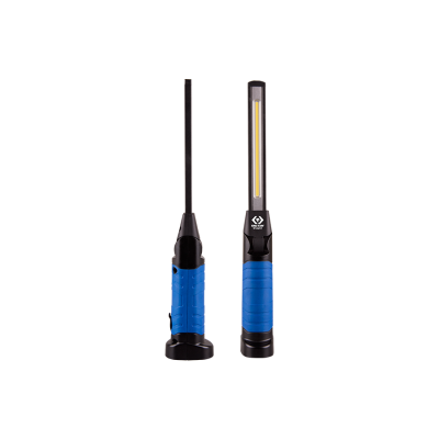 - 600 Lumen Slim Inspection Lamp (6W) - High Brightness: Worklight provides 600/250 lumens and top light offers 120 lumens, with a white light color temperature of 6500K. - Durable Construction: Built with ABS plastic, rubber housing, PC lens, and a slim aluminum body for enhanced durability. - Adjustable and Versatile: Features 120° angle rotation and a magnetic base for flexible positioning. - Rechargeable Battery: Powered by a 3.7V – 2600mAh Li-ion battery, with a 4-hour charging time using the included Type-C USB charging cable and 5V 1A USB charger. - Weather-Resistant: IP54 rating ensures waterproof and dustproof protection; IK07 rating for vandal resistance.