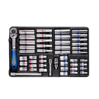 - 48 PC. 1/4" Drive 6-Point Socket Set for Tool Chest - Socket Type: 6-point hexagon sockets for enhanced grip and torque. - Tray Size: Fits Tray Category #2 (163 x 263mm) for organized storage. - Drawer Compatibility: Ideal for Drawer B1 (172 x 275mm) in tool chests. - Comprehensive Set: 48 pieces for a wide range of applications.