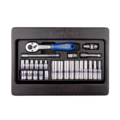 - 26 PC. 1/4" Drive Metric Socket Set for Tool Chest & Trolley - Drive Size: 1/4" DR. - Metric Sockets: Includes a range of metric sizes for versatile applications. - Tray Category: #5 (265 x 185mm) for organized storage. - Drawer Compatibility: Fits in Drawer B2 (579 x 270mm) and Drawer B3 (579 x 380mm) for tool chests and trolleys.