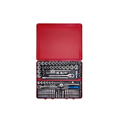 - 135-Piece Socket & Tool Set - 1/4", 3/8", & 1/2" Drive - Contents: 135-piece set including 1/4", 3/8", and 1/2" drive sockets and tools - Types: Comprehensive assortment of socket wrenches and accessories for various applications - Versatility: Ideal for both professional and DIY use
