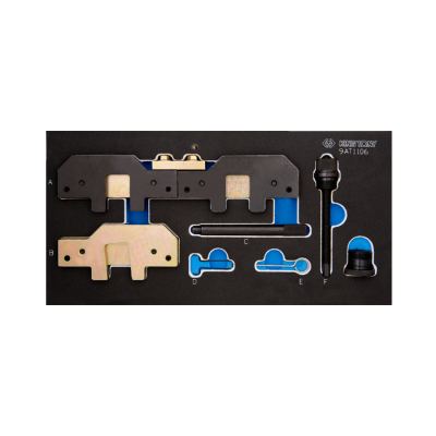 - Petrol Engine 1.8 To 3.0 Twin Cams Setting & Locking Tool Set (BMW) - Includes camshaft setting plate, timing adjustment plate, pre-load tool, flywheel locking pin, and tensioner pin - Designed for setting and locking popular BMW petrol engines - Use with 9AT1-A02 wrench when working with SINGLE VANOS system