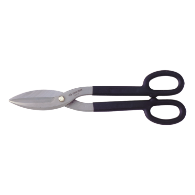 - Type: American type snips - Construction: One-piece forged construction for durability - Handle: Cushion handle with smooth, comfortable bows for ergonomic grip - Functionality: Designed for cutting straight and wide curves to the left or right - Material: Drop forged of high carbon steel for strength - Hardened Edges: Induction hardened cutting edges with a hardness of 58 - 61 HRC for longevity