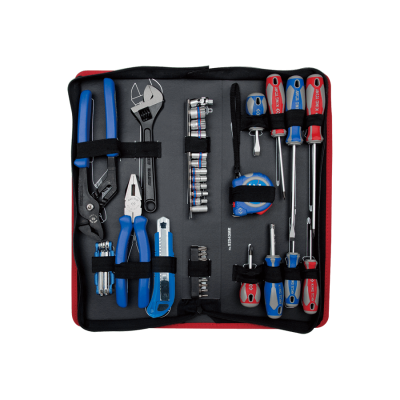 - 43 PC. Mechanics Tool Bag Set - Complete Set: 43 essential tools for mechanics. - Tool Bag Dimensions: 250mm (W) x 400mm (D) x 30mm (H) for convenient storage and portability. - Versatile Use: Ideal for automotive repair, maintenance, and DIY projects.