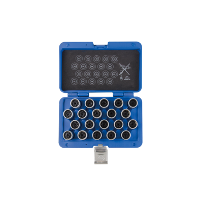 - 20 PC Wheel Lock Screw Socket Set (VW) - Essential Tool: Allows for servicing vehicles even if the key is lost. - VW Compatibility: Ideal for installing and removing wheel locks on most VW models. - Durable Construction: Made from chrome molybdenum alloy steel with a chrome-plated finish. - 17mm Hex Tool: Designed to work with 17mm hex tools for precise fit and function. - Comprehensive Contents: Includes sockets #521 through #540.