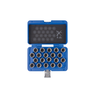- 20 PC. Wheel Lock Screw Socket Set (BMW) - Essential for Service: Allows for servicing BMW vehicles even if the lock key is lost. - Broad Compatibility: Designed for installing and removing wheel locks on most BMW models. - Durable Construction: Crafted from chrome molybdenum alloy steel and chrome plated for enhanced strength and corrosion resistance. - Precision Tooling: Features a 17mm hex tool for precise work. - Complete Set: Includes a full range of sockets: #041, #042, #043, #044, #045, #046, #047, #048, #049, #050, #051, #052, #053, #054, #055, #056, #057, #058, #059, and #060.