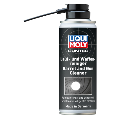 Instructions: Spray the cleaner onto the surfaces to be cleaned, allowing the foam to adhere and take effect. Once the foam collapses after some time, wipe it off along with the dissolved residues. When cleaning barrels, apply the foam into the barrel from the chamber side, seal the filled barrel at the front, and position the weapon with the barrel side facing down. After 30 – 60 minutes, the cleaner removes copper, tombac, and smoke deposits. Then, remove the cleaning foam and dissolved contaminants from the barrel using tow (oakum) or felt cleaners. After cleaning, protect the barrel with GUNTEC Gun Oil or GUNTEC Gun Care Spray. Note: Always test material compatibility in an inconspicuous area before application.