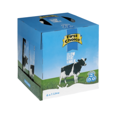 FIRST CHOICE 2% LONGLIFE LOW FAT MILK, EACH CASE CONTAINS 6 X 1L.WHEN IT COMES TO MILK, HEALTH COMES FIRST. OUR MILK IS COMMERCIALLY STERILE, MEANING IT IS FREE FROM PATHOGENS AND MICRO-ORGANISMS. IT IS OUR GUARANTEE THAT YOUR FIRST CHOICE MILK IS ALWAYS SAFE, AND TASTES GREAT. FIRST CHOICE MILK PRODUCTS ARE AVAILABLE IN FULL CREAM, LOW FAT AND SKIM MILK VARIANTS. ALL VARIANTS COME IN A 1 LITRE WITH A SCREW CAP FOR EASY OPENING, POURING AND CLOSING.