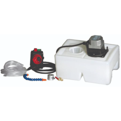 Maximum Delivery Height: 2.5 m for versatile application. Delivery Volume: 8 l/min for efficient coolant flow. Tank Capacity: 11 liters for extended operation. Tank Dimensions: 370 x 245 x 170 mm (L x W x H) for compact storage. Complete Kit: Includes tank, flexible tube, and hose for easy setup. Switch-Plug Combination: Simplifies operation. Magnetic Attachment: Securely holds the coolant hose in place. Self-Assembly: Designed for easy assembly and installation.