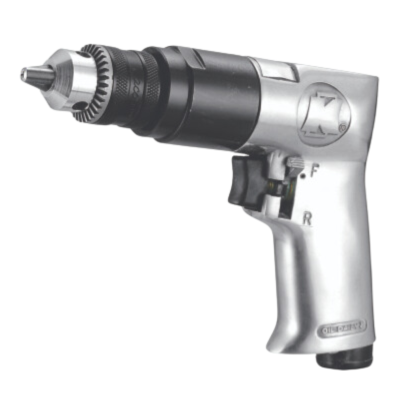Operating Pressure: 90 psi (6.2 Bar) Spindle Thread: 3/8 – 24 inch Chuck Size: 3/8 inch Free Speed: 1,800 RPM Overall Length: 150 mm Air Inlet: 1/4 inch PT Air Hose Inner Diameter: 3/8 inch Average Air Consumption: 4 CFM (113 liters/min) Introducing the 3/8” Heavy Duty Reversible Air Drill, designed for high-performance drilling in various applications. Operating at a pressure of 90 psi, this powerful drill features a spindle thread of 3/8 – 24 inch and a chuck size of 3/8 inch, making it compatible with a wide range of drill bits.