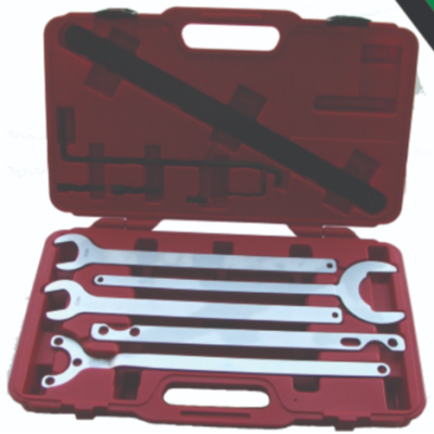 1 x 65mm Mercedes Fan Clutch Wrench 1 x 32mm BMW Fan Clutch Wrench 1 x 36mm Mercedes Fan Clutch Wrench 1 x 40mm Mercedes Fan Clutch Wrench 1 x 38mm BMW Fan Clutch Holding Wrench 1 x 44.5mm BMW Fan Clutch Holding Wrench 1 x Mercedes Fan Clutch Holding Tool 1 x Universal Fan Belt Adjustment Wrench 1 x 10mm Allen Key 1 x 8mm Allen Key 1 x 2.5mm Allen Key Engine Compatibility: Suitable for a range of engine codes, including 6 CYL, 6 CYL 4 VLV, 8 CYL 4 VLV, and 12 CYL 4 VLV.