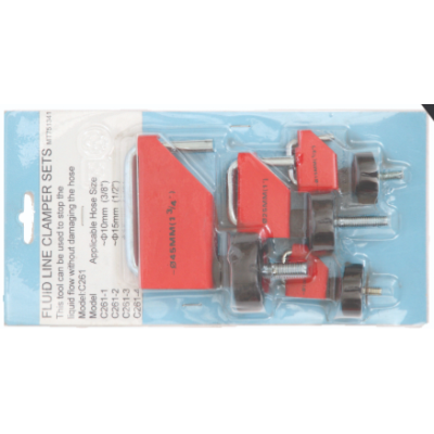 Safe and Easy to Use: Pinches off fluid lines securely without damaging the hose or line. Versatile Tool Set: Ideal for use with a variety of fluid lines, including fuel, vacuum, transmission, and brake lines. Durable Construction: Built to withstand the demands of professional automotive work. Four Common Sizes: Includes sizes 3/8?, 1/2?, 1?, and 1-3/4? to fit a wide range of line diameters. Whether you're working on vehicle maintenance or fluid system repairs, this Fluid Line Clamp Set provides the reliability and versatility needed to get the job done efficiently and safely.