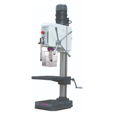 Electrical Connection: 400 V / 3 Ph ~ 50 Hz Total Connected Load: 1.1 / 1.5 kW Drilling Capacity in Steel (S235JR): 24 mm Continuous Drilling Capacity in Steel (S235JR): 21 mm Throat Depth: 235 mm Spindle Stroke: 127 mm Spindle Seat: MT 3 Automatic Spindle Sleeve Feed: No Spindle Speeds: 8 Steps, 75 – 2,900 min?¹ Table Work Surface (L x W): 380 x 380 mm T-Slot Size: 14 mm, diagonal Inclinable Drilling Table: No Rotatable Drilling Table: 360 degrees Max Distance Spindle – Table: 450 mm Max Distance Spindle – Stand: 610 mm Stand Work Surface (L x W): 350 x 322 mm Stand T-Slot Size: 14 mm Number of T-Slots on Stand: 2 T-Slot Distance on Stand: 120 mm Column Diameter: 92 mm Dimensions: 600 x 380 x 1,300 mm Total Weight: 158 kg Description: