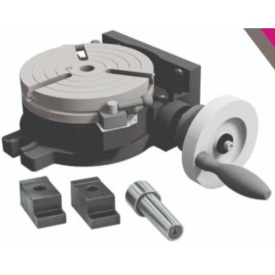 High-Quality Construction: Made from premium Meehanite cast for durability. Precision Bearings: Ensures smooth operation and accuracy. Stability Under Load: Designed to maintain stability even when handling heavy workpieces. Large Spindle Hole: Allows for clamping longer workpieces easily. Quick-Action Dividing: Features locking discs for faster production speeds, ideal for mass production. Hardened and Ground Screw: Provides reliable and precise adjustments. Working Table with 360° Scaling: Offers full rotational capability for versatile machining tasks. Handwheel Rotation: 1 complete turn equals 4° rotation, with a scaling of 2I for easy measurement. Versatile Division Options: Up to 150 different divisions available using indirect dividing plates. Optional CNC Add-On Kits: MK RT1 and MK RT2 for enhanced control of horizontal and vertical circular dividing tables. The RT 150 Circular Dividing Table is an essential tool for precision machining, combining robust construction with advanced features for efficiency and accuracy.