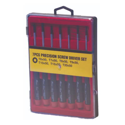 Variety of Sizes: This comprehensive set includes 7 different sizes, ensuring you have the right fit for any Torx screw. Precision Tips: Each screwdriver is engineered for precision, providing a secure grip and reducing the risk of stripping screws. Durable Construction: Crafted from high-quality materials, these screwdrivers are built to withstand wear and tear, ensuring long-lasting performance. Ergonomic Design: Designed with comfort in mind, the handles offer a secure grip for enhanced control during use. Why Choose Our Precision Torx Screwdriver Set? Ideal for both professionals and DIY enthusiasts, this set is perfect for a wide range of applications. Keep your projects on track with tools that deliver reliability and performance every time. Upgrade your toolkit today!