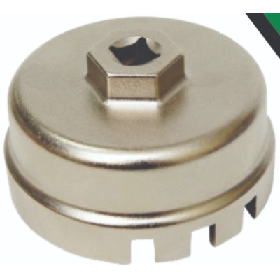 Key Features: Specialized Notches: Features six uniquely designed notches that securely engage with the ears on caps for maximum torque, ensuring a tight grip during use. Fast Alignment: Embedded guide arrows allow for quick alignment of notches to ears, simplifying the installation process. Durable Construction: Built from a single-piece die-cast aluminum for enhanced strength and longevity. Specifications: Size: 64.5mm, with 14 flutes and a 3/8? (10mm) drive. Compatibility: This oil filter cup tool is suitable for most Toyota 4-cylinder engines (1800CC – 2000CC) and is specially designed for the plastic oil filter caps of Toyota and Lexus models, including: