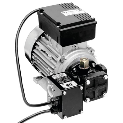 INTERNAL GEAR ELECTRIC PUMPS FOR LUBRICANTS. 230 V - 50 HZ (SINGLE PHASE) OR 400 V - 50 HZ (THREE PHASE) MOTOR DEPENDING ON MODEL, IP-55 PROTECTION AND ON/OFF SWITCH. CAST IRON PUMP BODY, SINTERED STEEL GEARS AND BY-PASS VALVE. MOTOR WITH MOUNTING FEET, THE PUMP CAN BE MOUNTED HORIZONTALLY ON A FLAT SURFACE OR VERTICALLY TO A WALL. MODELS WITH ELECTRONIC PRESSURE SWITCH START AUTOMATICALLY WHENEVER A PRESSURE DROP IN THE DISTRIBUTION LINE OCCURS (I.E. WHEN A DELIVERY GUN IS OPENED) AND STOPS ONCE PRESSURE IS BUILT AGAIN IN THE LINE (I.E. WHEN A DELIVERY GUN IS CLOSED).