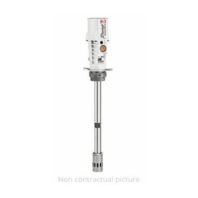 PM3 air operated piston pumps. Light weight and effective high pressure delivery air operated pumps specially designed for use in mobile and portable greasing units. Pumps are available with four different suction tube lengths, to fit all commercial grease drums: 12,5 - 20 kg (35 lb), 50 kg (120 lb) and 185 kg (400 lb). They include a height adjustable 2” BSP (M) bung adaptor. Maximum air consumption with 6 bar (87 psi) air inlet pressure, NLGI-2 grease at 20 ºC and 110 cpm. Maximum free delivery at 6 bar (87 psi). NLGI-2 grease. Maximum noise level measured at 1 m (3.3') from the pump, 7 bar (100 psi) air pressure and free delivery.