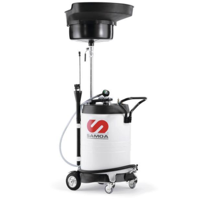 Combined Waste Oil Suction and Gravity Collection Units for remote use once a vacuum is created inside the steel reservoir. Discharge is facilitated through a 1.5-meter hose, pressurizing the unit. Includes a safety valve to prevent over-pressurization.